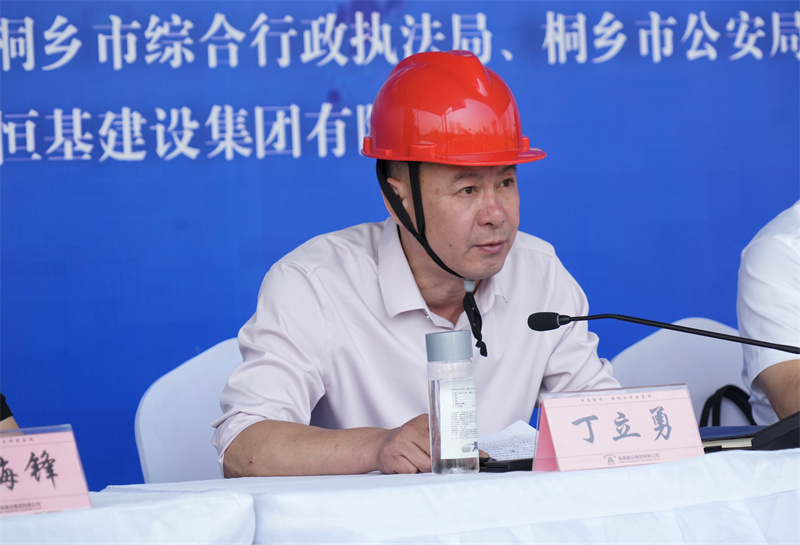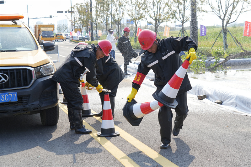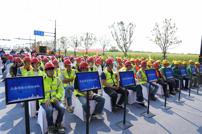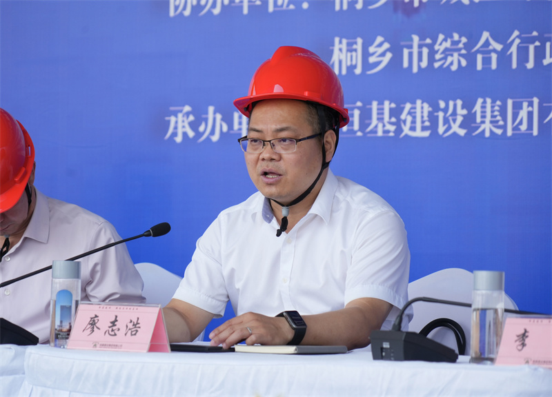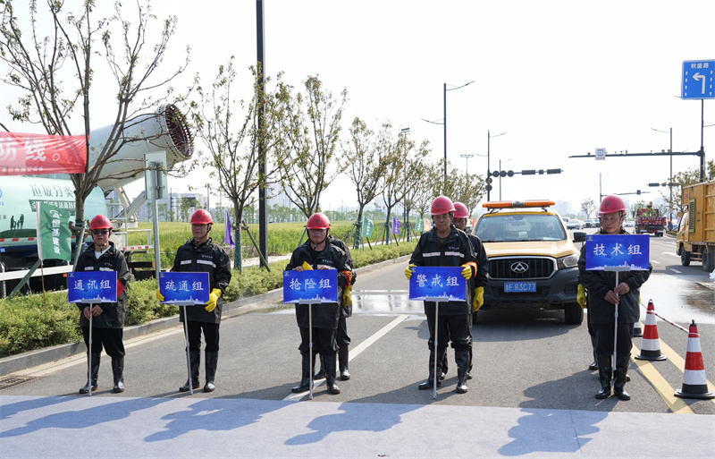 4月29日下午,由桐乡市应急管理局、市住房和城乡建设局主办,桐乡市城区开发管理委员会、梧桐街道办事处、市综合行政执法局、市公安局交警大队协办,集团公司承办的“2025年度桐乡市城市内涝应急演练”活动在集团公司承建的梧桐街道秋华路环东支路东段道路现场进行。桐乡市应急管理局副局长丁力勇,桐乡市住房和城乡建设局党委委员、园林中心主任廖志浩,桐乡市住房和城乡建设局园林中心副主任李娜、市综合行政执法局机动中队队长董海锋,市公安局交警大队副大队长张惠清,梧桐街道镇村建设办公室主任肖辉 桐城委(桐城集团)安全生产部副部长钱东良,集团公司董事长吕国跃出席,市园林市政管理服务中心市政科全体成员、恒基建设、巨鑫建设等8家市政建筑单位的抢险分队代表近130人参加活动。