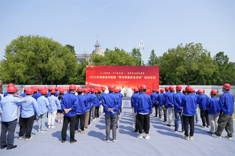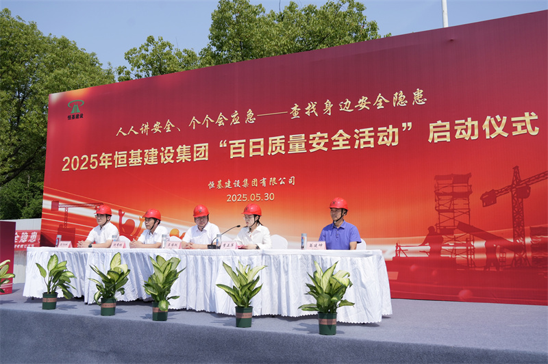 今年6月是第24个全国“安全生产月”,主题为“人人讲安全、个个会应急——查找身边安全隐患”。为贯彻全国“安全生产月”工作要求和部署,增强质量安全意识,有效防范并化解重大安全风险,以高水平质量安全生产促集团高质量发展。5月30日,2025年恒基建设集团“百日质量安全活动”启动仪式在集团公司承建的市新永丰南延道路工程现场举行,拉开了集团“百日质量安全活动”的序幕。集团公司董事长吕国跃、总裁李正萍、副总裁陈阳冰、工程顾问沈有根、党建指导员翁建坤等出席并在主席台就座,集团公司部门负责人、项目经理、恒基物业管理人员、全体员工近120人参加,李正萍主持启动仪式。