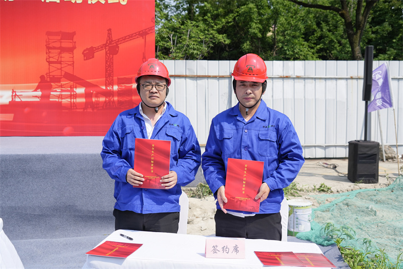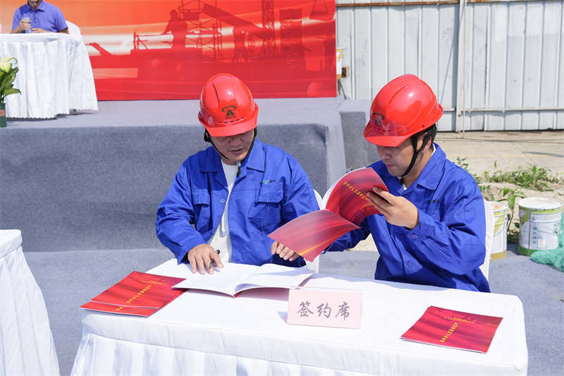 集团公司工程部部长王孝宣读集团公司2025年度“百日质量安全活动”实施方案;集团董事长吕国跃与工程部、工程部与项目经理代表分别签订2025年“安全生产考核责任书”;分公司恒基物业、恒基管道、项目经理代表作表态发言,表示将以“百日质量安全活动”为契机,以活动提质量,以活动促安全,贯彻落实好质量安全工作。随后,全体与会人员在“百日质量安全活动”主题横幅签字,表达积极参与“百日质量安全活动”活动的热情和决心。