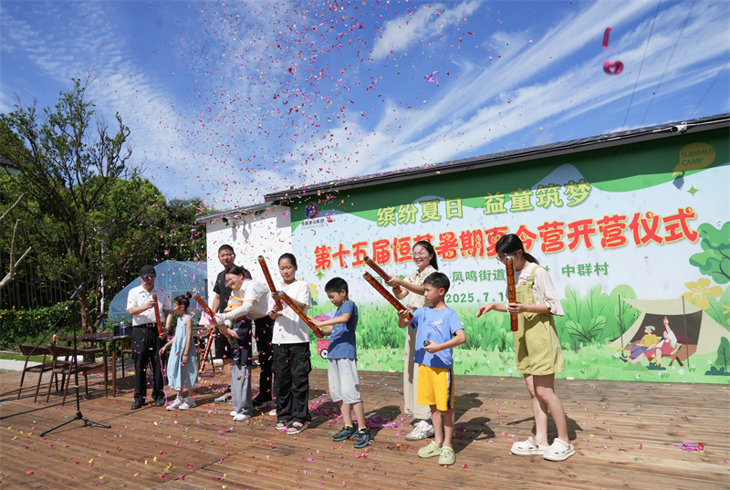 集团党支部组织委员范超婷主持开营仪式并介绍本届夏令营活动情况,表示将用热情和爱心陪伴小朋友们度过一个难忘的夏令营。联庄村团支部书记徐星祝愿所有的营员小朋友们在夏令营里玩得开心,学有所获,收获知识、快乐和精彩。集团党支部副书记倪松高宣布第十五届恒基暑期夏令营开营,并与联庄村党委委员、纪委书记盛司晗,联庄村团支部书记徐星、中群村团支部书记王一平及小朋友代表共同拉响开营礼花筒。五彩的礼花飘扬,预祝十五届恒基暑期夏令营的圆满成功。