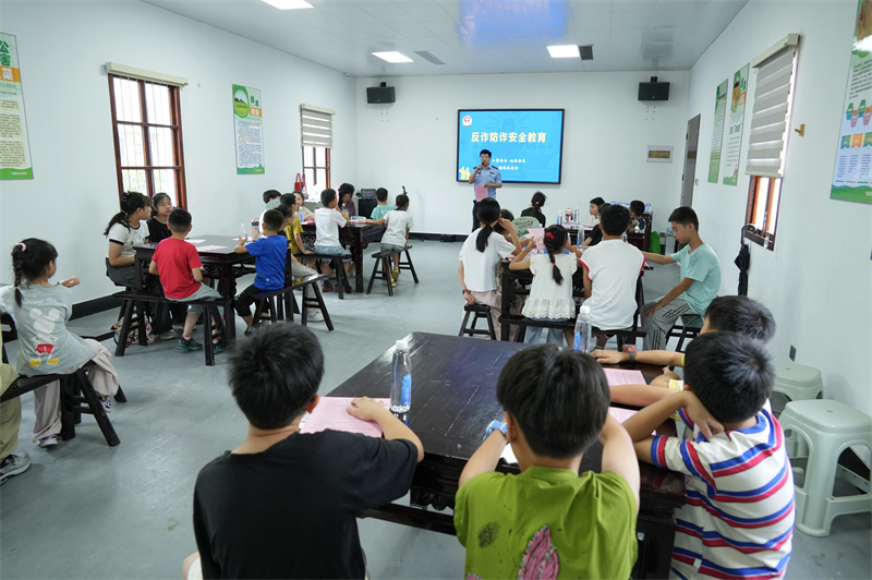 凤鸣街道派出所马警官和综治委工作人员特意赶来向小朋友们作反诈防诈、防溺水安全教育和禁毒知识宣传科普。为孩子们揭开“冒充熟人借钱”“游戏装备诈骗”等常见套路,通过小朋友“不贪小便宜、不乱点链接、及时找家长”的反诈口诀,防溺水“三字经”和“同伴落水不盲目施救”等具体事例,生动形象宣传了反诈防诈、防溺水安全知识。综治委工作人员通过实物样品,让孩子们清晰认识毒品的危害,提醒学生们要时刻警惕,守护好自身安全,健康成长。