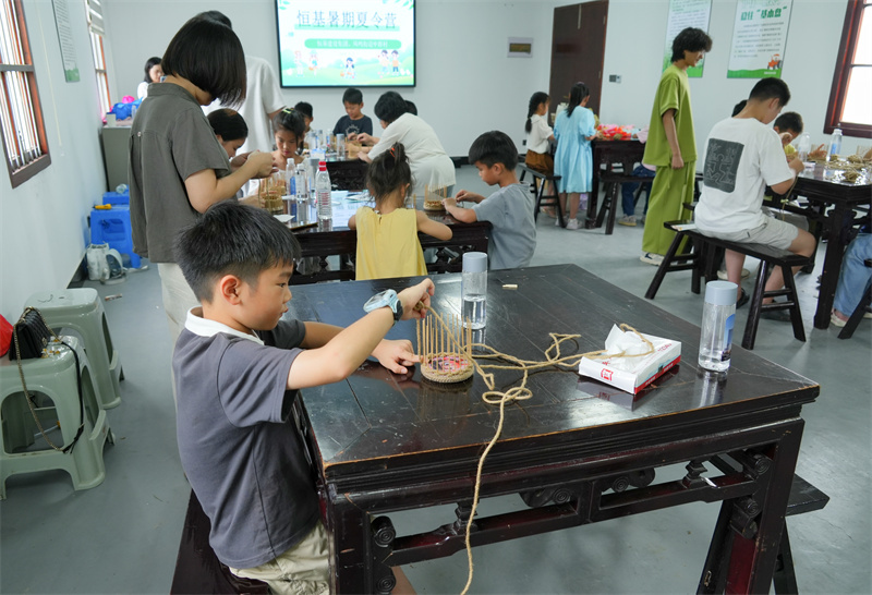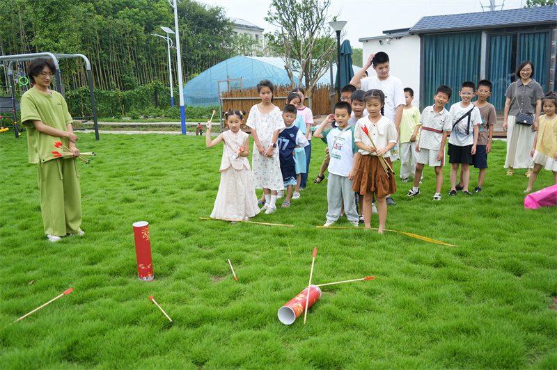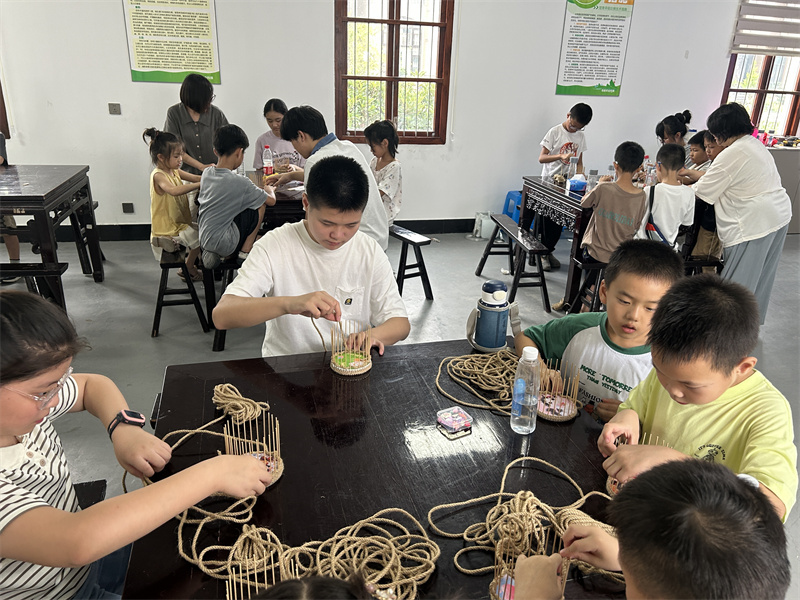 本期夏令营围绕“快乐暑期,安全教育、农耕体验、智慧童心”主题,设计活动内容。从农耕田园体验,投壶、摸石头过河游戏等游戏项目,及禁毒、垃圾分类宣传和儿童心理健康等知识教育,到绳艺笔筒新编趣味手工制作,让小朋友们在一天沉浸式体验中,感受了动手的乐趣、成功的喜悦,收获了知识、快乐与友谊。