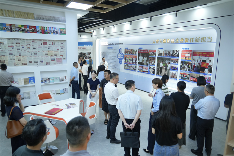 嘉兴市委宣传部副部长、市新闻出版局局长王罡,嘉兴市文明办副主任韩国龙等领导嘉宾和与会人员共同参观了集团文化展厅,直观了解集团公司以党建引领文明建设的实践成果。